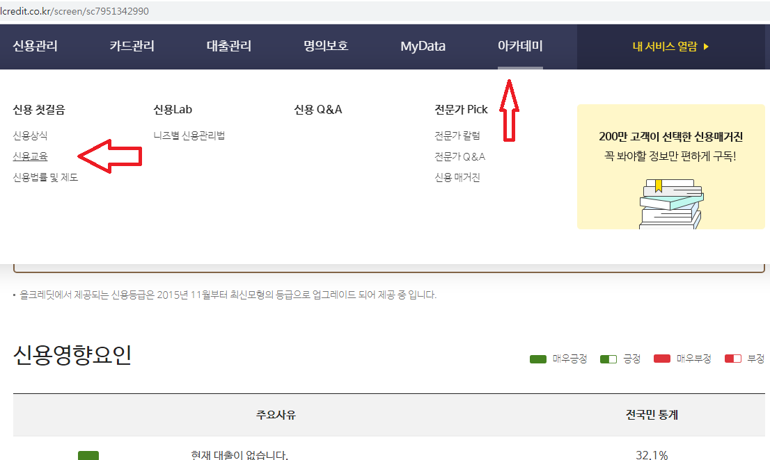 아래에 아카데미- 신용교육란이 있다.