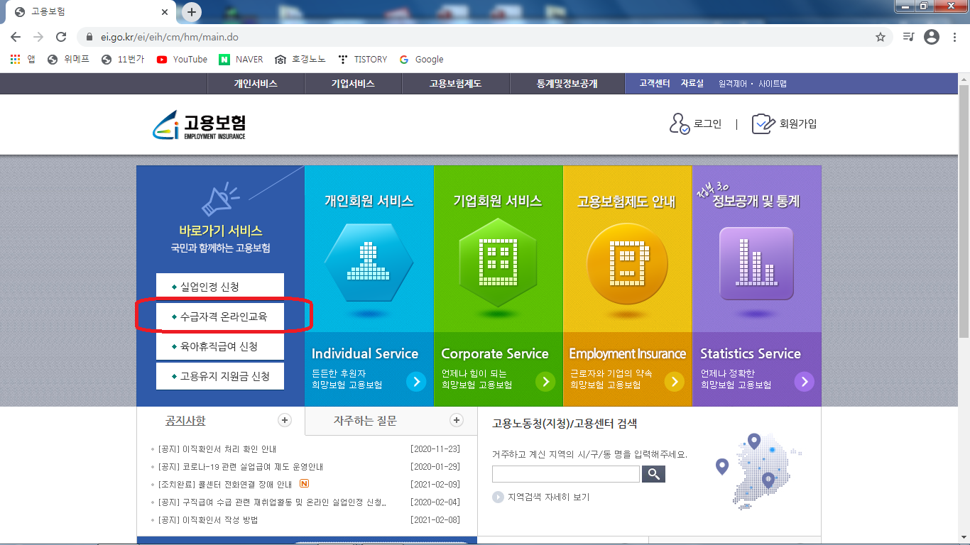 방문하기전 해야할 일이 2가지 있다. 아래 수급자격 온라인교육을 시청하고,