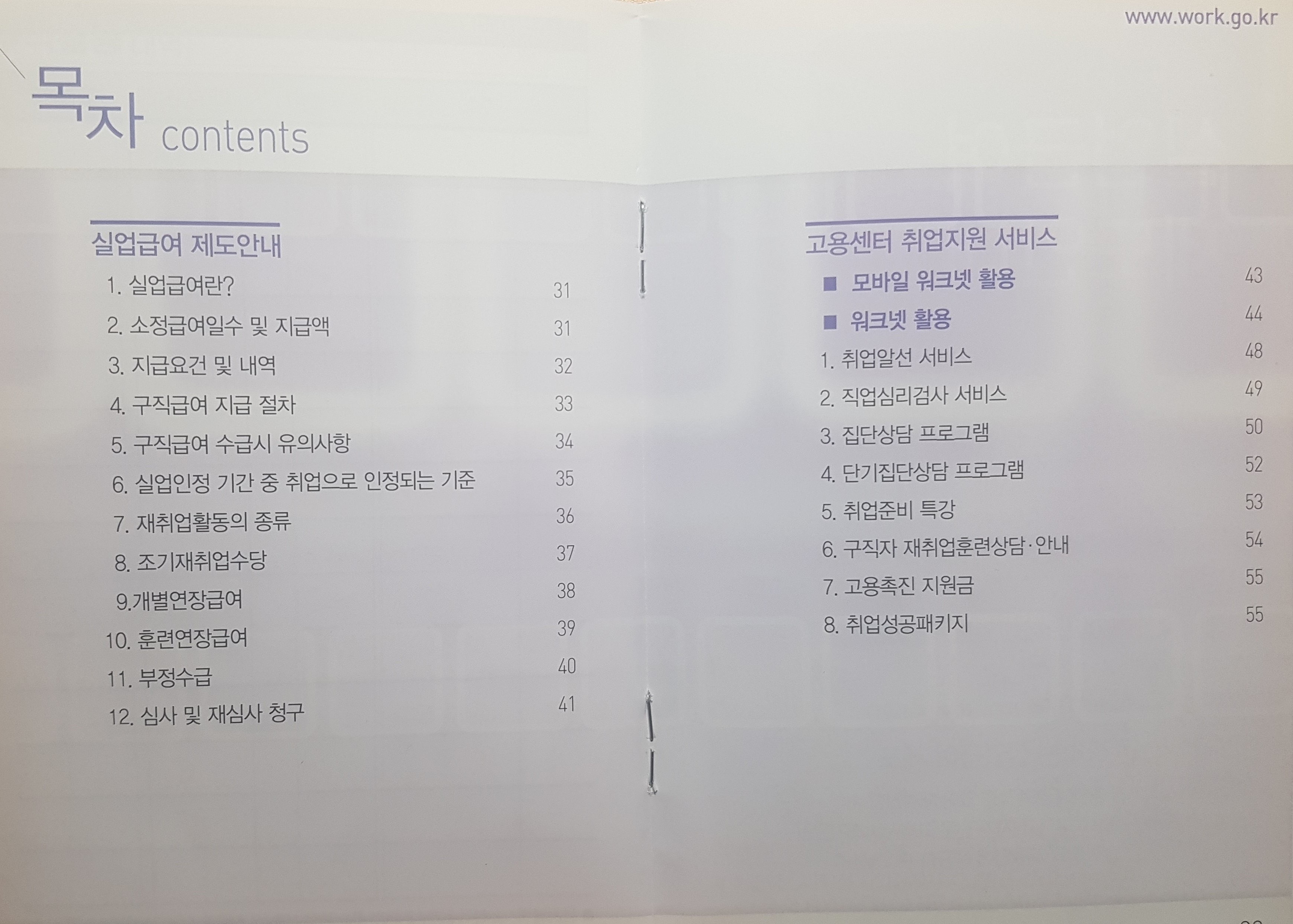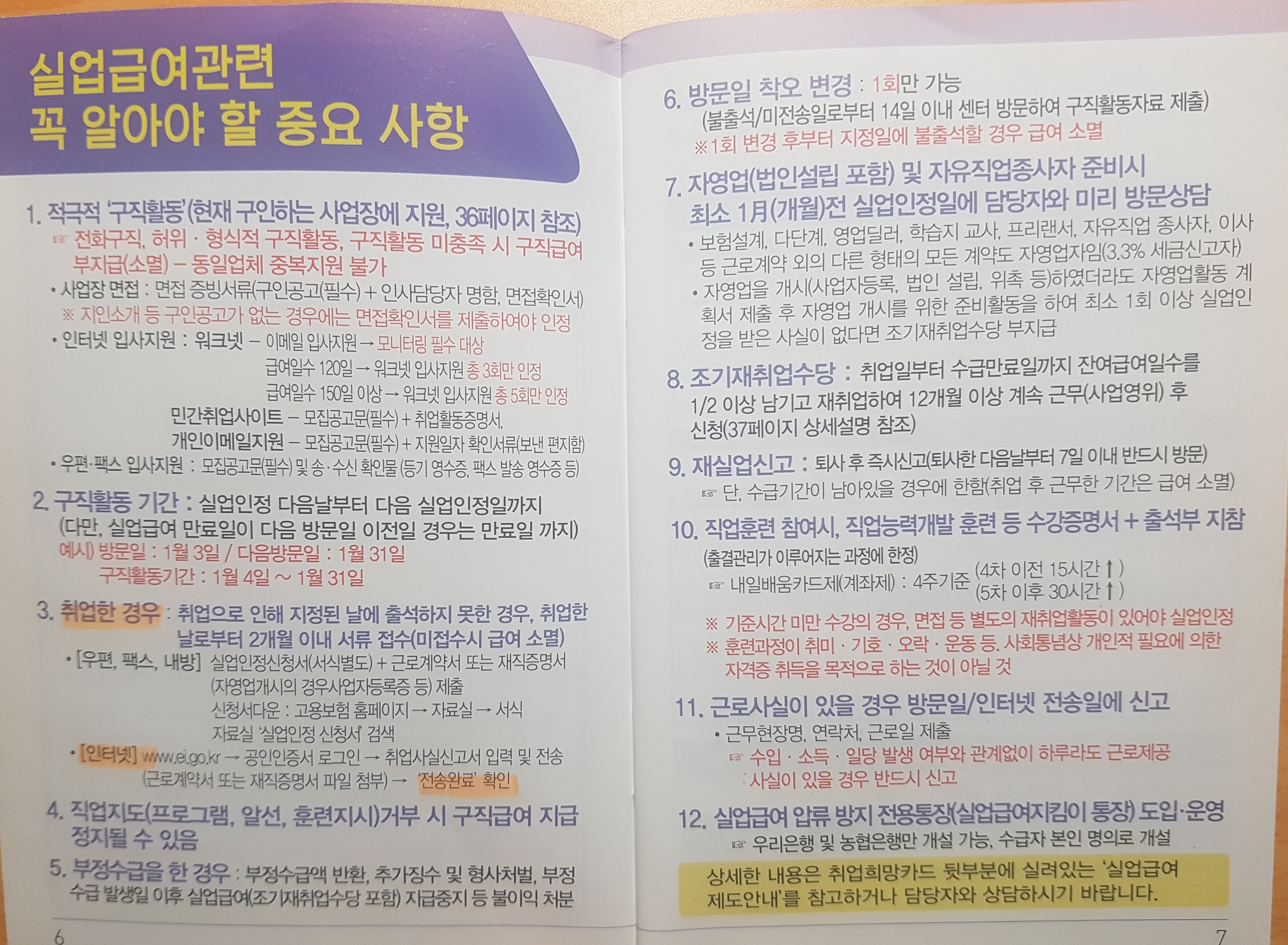 수첩을 펼쳐보면 구직급여에 대해 상세히 설명 되어 있다.