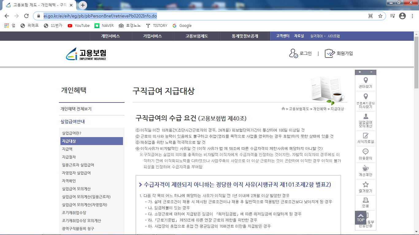고용보험 제도 - 개인혜택 - 구직급여 지급대상