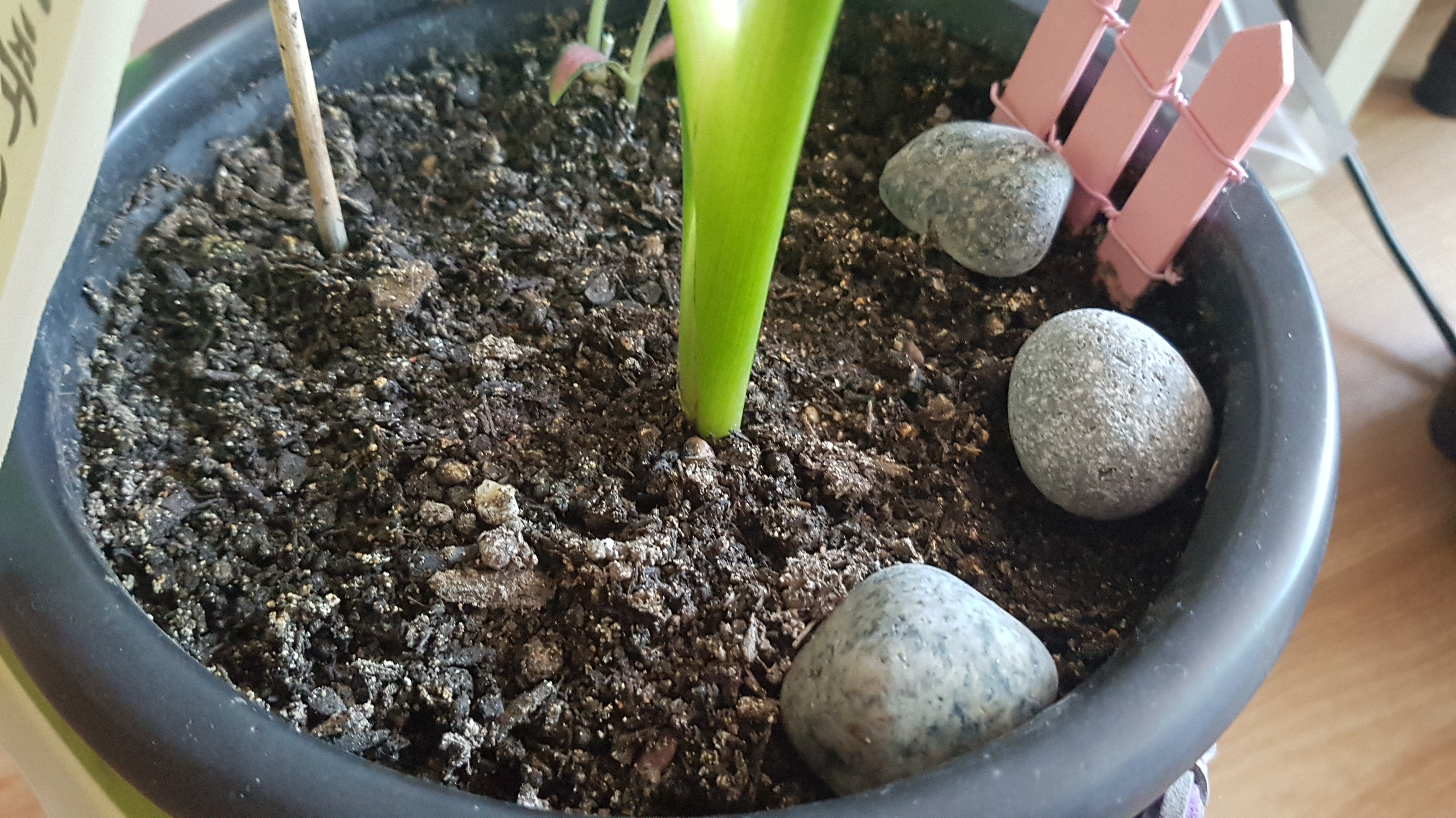 일단 흙의 공극을 넉넉히 생기게 하여 다시 화분을 채웠다. 상단에 이쁜 자갈은 제거 했다.