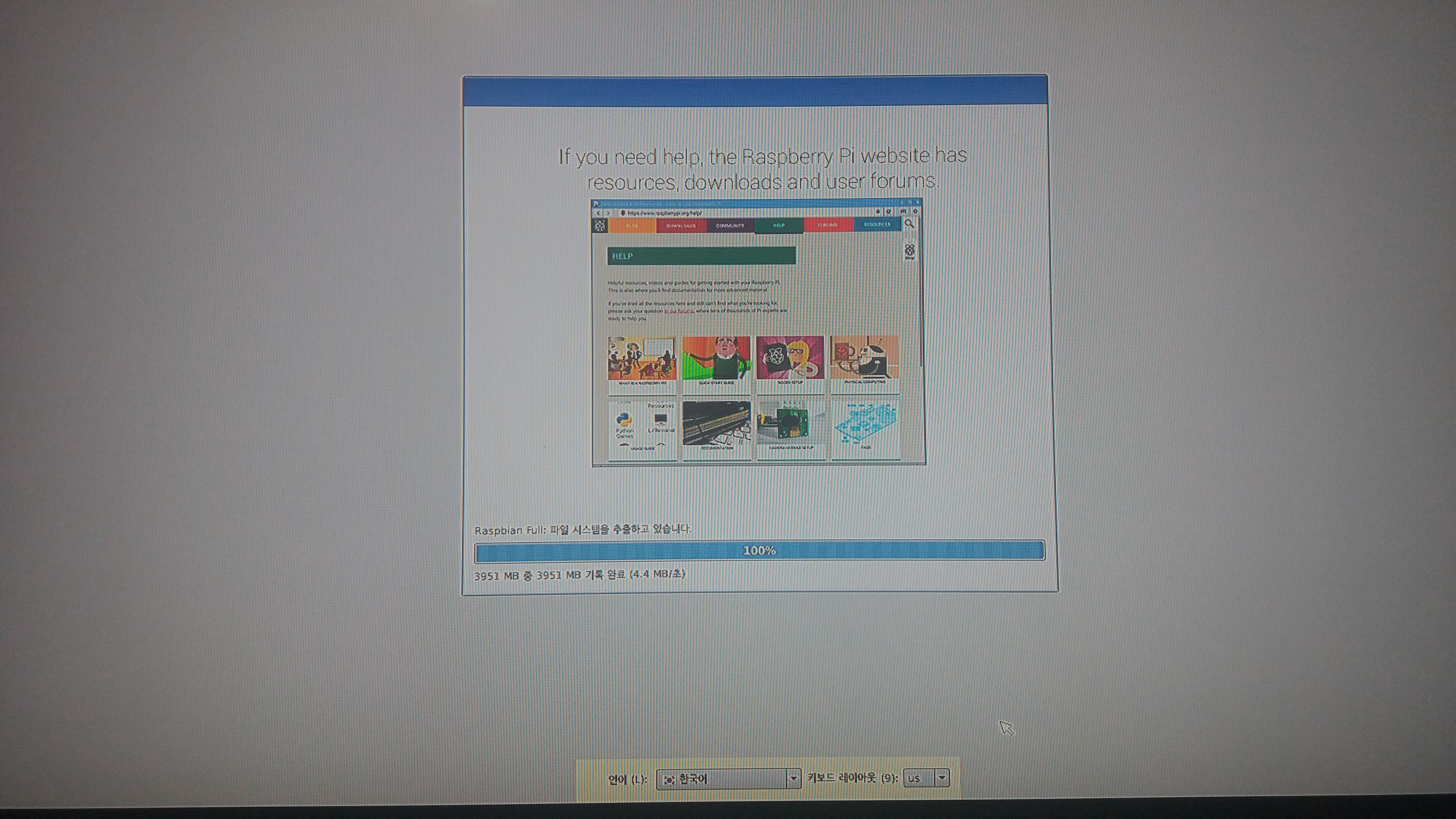 그러면 라즈비안 메인화면이 두둥,,, 설치끝^^