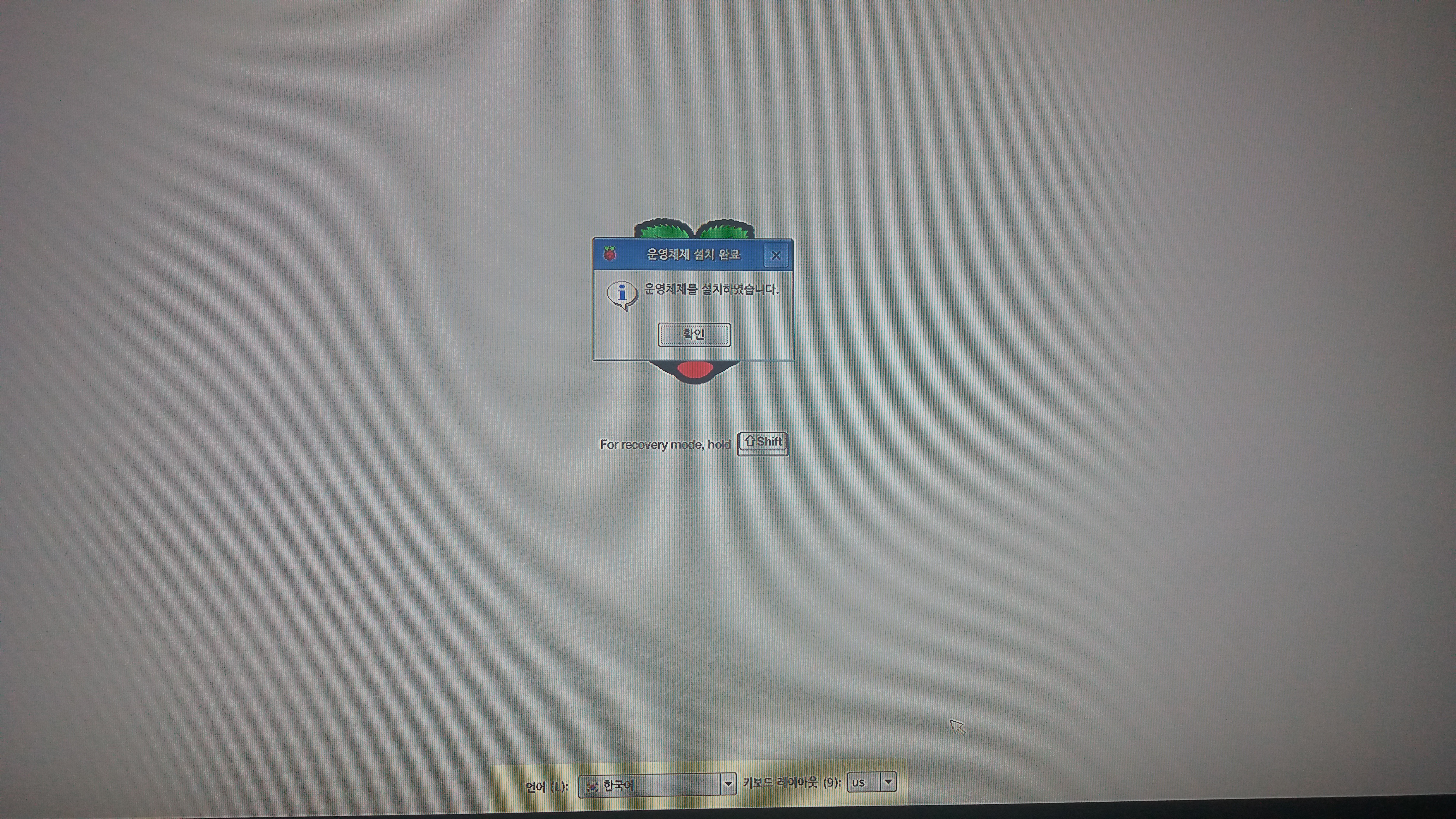 그런데,, 한글이 깨져있다(걍 영어로 할걸)...ㅠㅠ , 키보드도 안된다 ㅠㅠ, 무선 와이파이 안된다. 마우스는 된다.